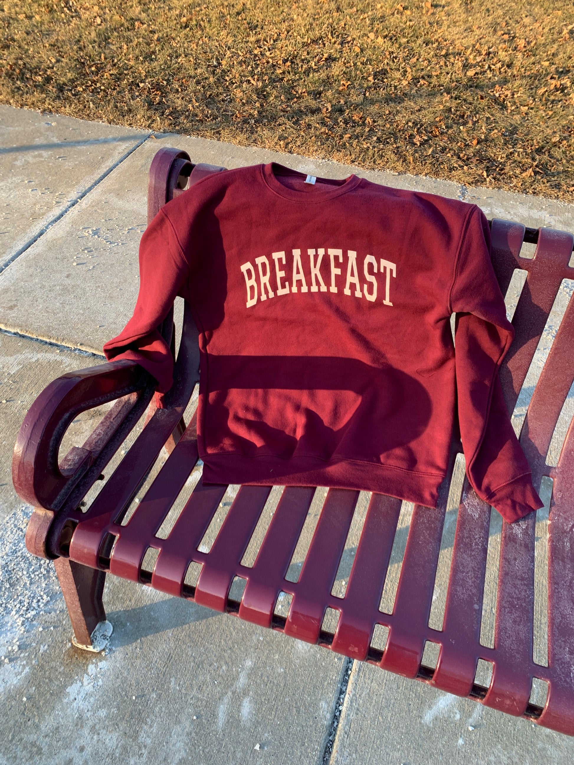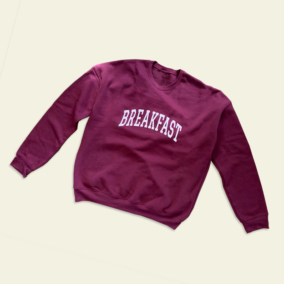 A pullover, crew-neck sweatshirt of champions, for champions. Celebrating the only sport we know: Breakfast! Our original drop was so successful that we brought it back in full collegiate glory. Bon appetit.