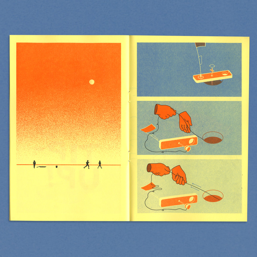 Tip-Up! is an illustrated visual narrative that wends its way across thick, frozen ice in bright colors, leading the viewer from set-up at dawn to the first catch of the day. An ode to Wisconsin’s quintessential Winter pastime.